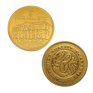 Édes csokipénzek, felületükön logózott pálcikás fehércsoki tallérok és dombornyomott csokinyalókák minden mennyiségben.